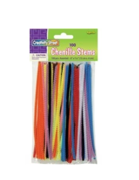 Creativity Street 4mm Chenille Stems - Art, Craft - 6" x 0.16" - 100 / Pack - Assorted - Wood