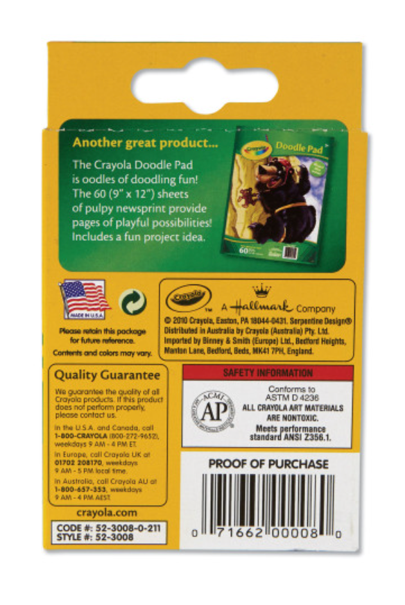 Classic Color Crayons, Peggable Retail Pack, 8 Colors/pack