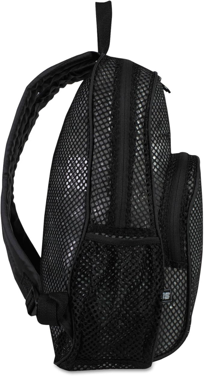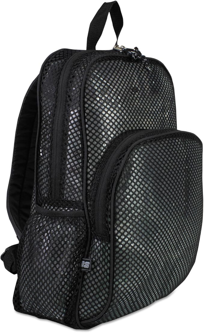 - See-through mesh material. Spacious main compartment fits laptop to 17".