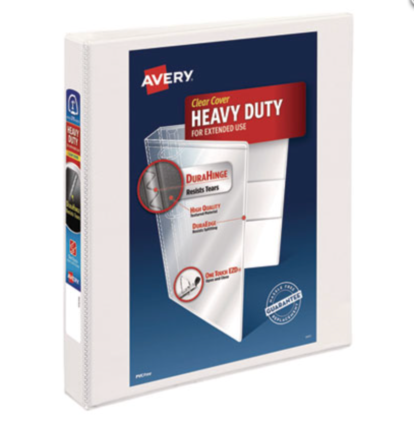 Heavy-Duty View Binder with DuraHinge and One Touch EZD Rings, 3 Rings, 1" Capacity, 11 x 8.5, White