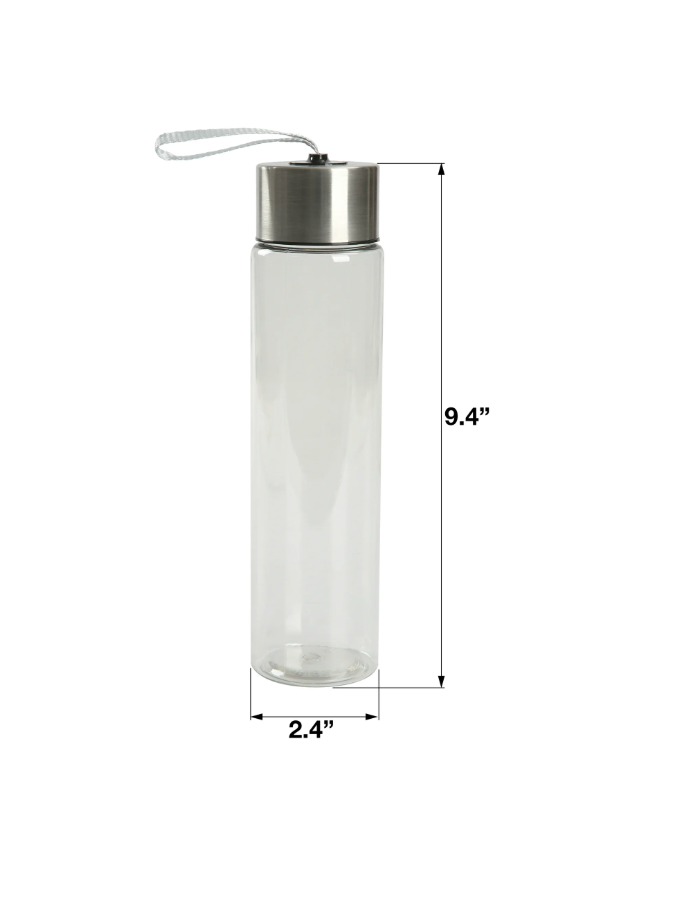 Mainstays 18oz Plastic Clear Water Bottles Stainless Steel Screw Cap Lid with Strap