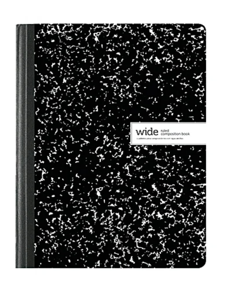 Composition Book, Wide/Legal Rule, Black Cover, (100) 9.75 x 7.5 SheetsBlack marble.Lays flat on any surface.